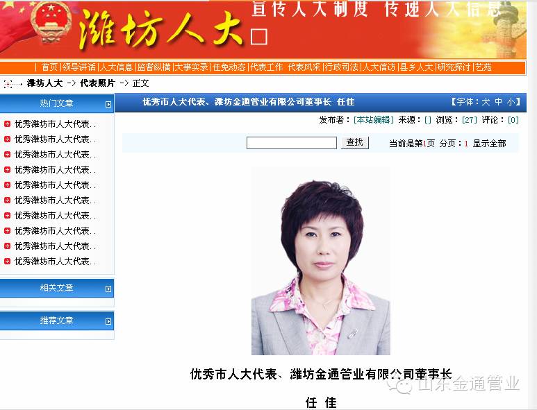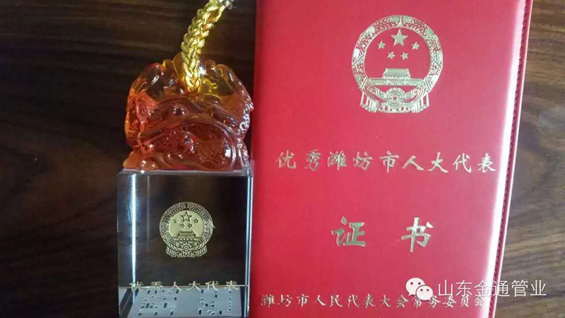 热烈祝贺山东金通管业有限公司董事长任佳再次被当选为优秀市人大代表!更多有关沟槽管件的相关内容请访问我们的网址:www.i-wantmore.com
